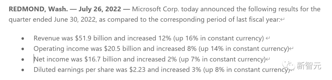 根据微软今年7月末公布的2022年Q4财报,受到大环境低迷、美元升值、PC市场疲弱及撤出俄罗斯的成本等影响,上季微软营收仅增长12%,低于预期,其中Windows OEM及Xbox内容和服务两部分业务各下降2%和6%。