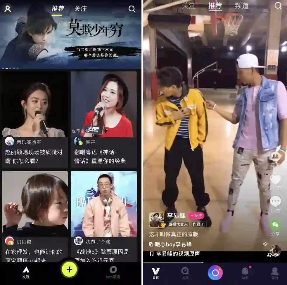 有视频安卓和iOS版分别于8月底和9月初上线,官方介绍称这是一款精品原创短视频分享平台。打开有视频后,可以看到页面设计与微视不同。前者视频内容是田字格的横屏+竖屏的呈现方式,上方还有五屏轮播图;后者则是完全的竖屏模式。