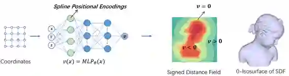 用于学习三维隐式符号距离场的样条位置编码