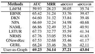 表4:不同方法在 MIND 数据集上的比较