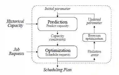 在云计算中,由于需求的庞大和多样性,平台计算资源的容量管理一直是一个极大的挑战。为了更好地根据整个云计算平台的容量进行规划,平台往往会提前收集一部分非即时的计算作业需求,这些计算作业可以持续运行指定长度的时间,且起止时间更加灵活。通过根据非即时计算作业的需求和平台在未来一段时间内的容量情况来进行统一调度,有助于平衡整个平台的工作负荷,提升平台资源的利用效率。但是,由于平台上未来可用的计算容量是不确定的,所以对这些非即时作业的调度,在不确定的计算资源约束下进行安排是一个巨大的挑战。
