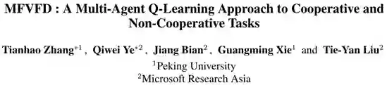 多智能体强化学习(Multi-agent Reinforcement Learning, MARL) 有望帮助解决各种现实世界中的问题。然而,追求有效的MARL 面临着两大挑战:部分可观察性和可扩展性限制。为了应对这两大挑战,并使得 MARL 适用于竞争任务、合作任务以及混合任务,微软亚洲研究院和北京大学的研究员们在中心训练分散执行(Centralized Training with Decentralized Execution,CTDE)的框架下,从个体值函数分解 (Value Function Decomposition,VFD)的角度,结合平均场理论(Mean Field Theory,共同提出了一种新颖的多智能体 Q 学习方法——MFVFD。