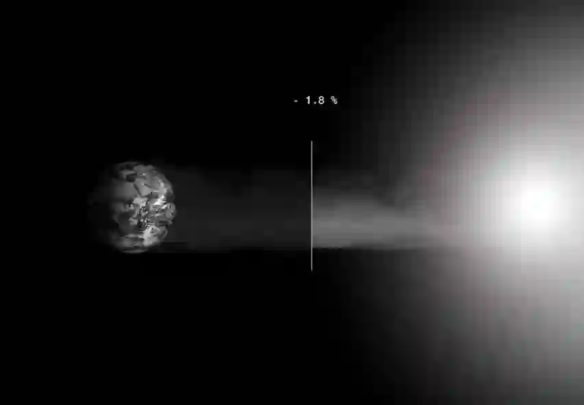 该图显示,如果 1.8% 的太阳辐射被偏转,太空气泡将会对地球产生的影响。
