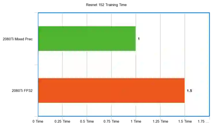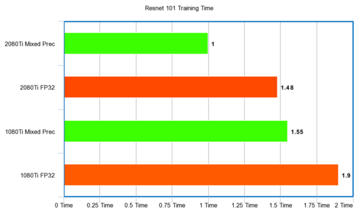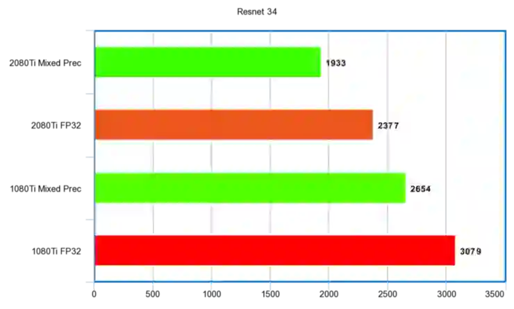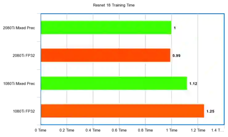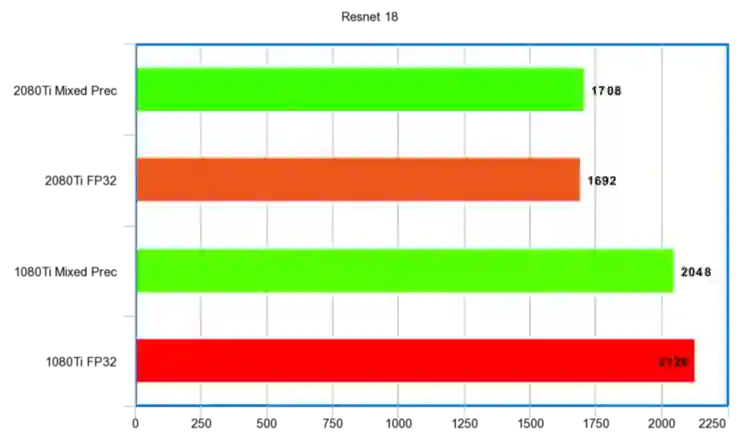 RTX 2080Ti 与 GTX 1080Ti 的混合精度训练结果对比