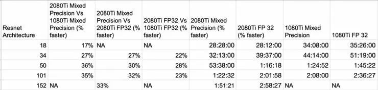 注意:这并非关乎基准性能比较的文章,而是 2080Ti 与 1080Ti 之间基于 2 builds 的训练时长对比。