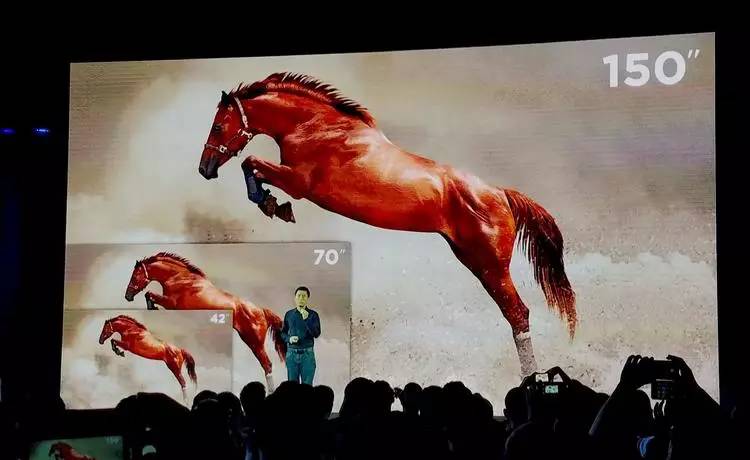 米家激光投影电视最大能投 150 英寸的画面,150 英寸是什么概念?大家可以参考下面的对比图片,还是非常震撼的。