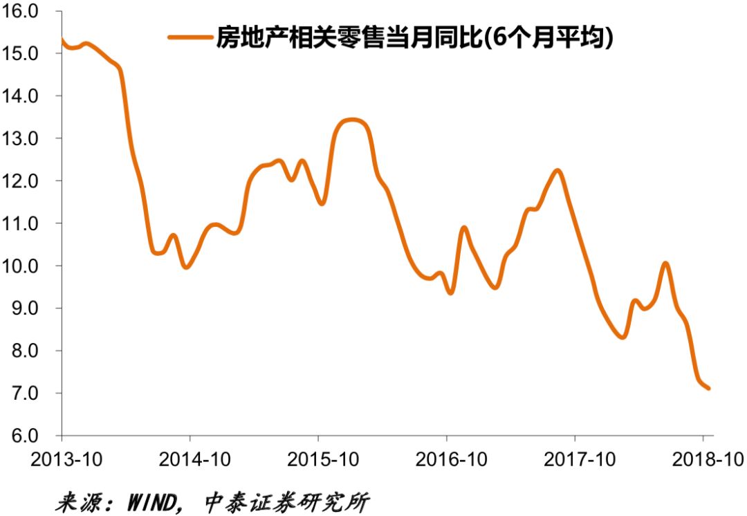 5月11日,中泰证券首席经济学家李迅雷发表文章认为,有数据显示,影响消费的并不是“六个钱包”,而是房价增速放缓。社会消费品零售额的增速与房价及销量增速正相关。他的论据之一是“房地产相关零售同比”、“家电”、“家具”、“建筑装潢”等曲线呈现的趋势。
