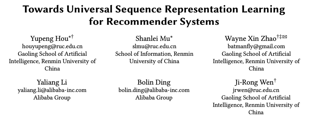 论文题目:Towards Universal Sequence Representation Learning for Recommender Systems