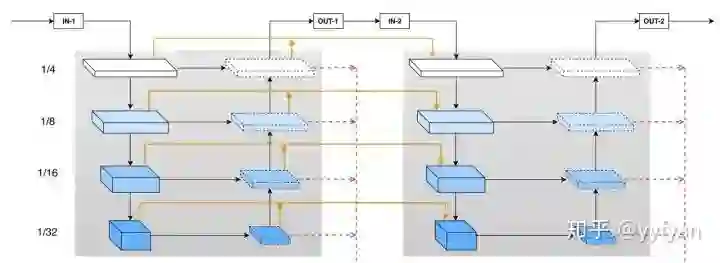一个FPN有效,2个FPN是否有效,MSPN当然还有其他创新点,不同于FPN固定通道256,而是与backbone一致,同时还有一个特征融合模块,解决梯度消失和特征重利用。这个是做姿态估计的,其实这个结构在其他任务上也是work的。