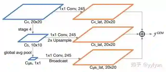 ThunderNet是做ARM上实时的目标检测算法,主要简化了FPN结构,只使用C4/C5,同时引入gpooling操作(Face++论文好多这么用,确实有效),最终输出C4分辨率大小的累加特征。