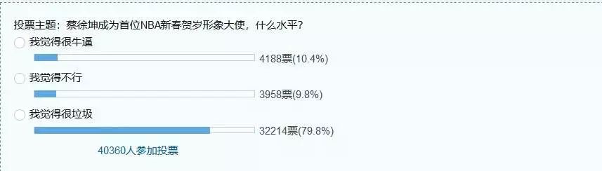 虎扑社区关于蔡徐坤成为首位NBA新春贺岁形象大使的投票