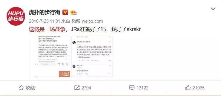 现在我们再来回忆下2018年虎扑和吴亦凡的这场“大战”。2018年7月,虎扑的步行街在微博“宣战”。要知道当时的虎扑的步行街只有66万微博粉丝,而其“宣战”的吴亦凡微博粉丝高达3300万。