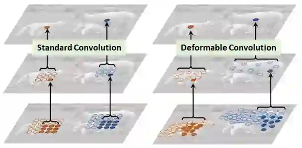 传统/常规卷积基于定义的滤波器大小,在输入图像或一组输入特征图的预定义矩形网格上操作。该网格的大小可以是3×3和5×5等。然而,我们想要检测和分类的对象可能会在图像中变形或被遮挡。