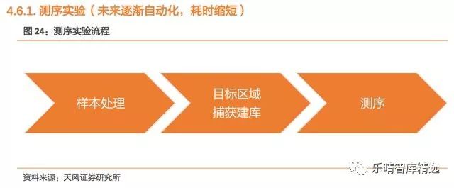 目前基因检测获取的样本一般为血液样本,也有唾液、粪便等生物样本,万变不离其宗,只要能从中提取足够量的DNA就可以进行基因检测。测序实验占据整个检测周期最长的时间,由于仪器和试剂耗材多由Illumina等外企垄断,测序实验的成本大约占总成本的40-50%,未来部分国内企业有望突破上游瓶颈限制,大幅降低这部分成本。