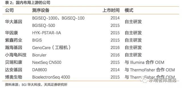 自主研发的仪器最早上市的是华大基因,作为国内测序服务巨头,早在2012年华大向美国测序仪公司CompleteGenomics发出现金收购要约,以每股3.15美元(不计利息)收购该公司所有股权。