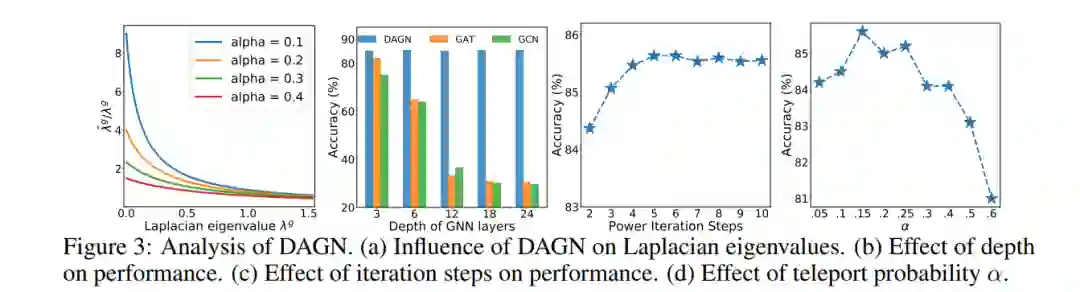在DAGN中,较小特征值被amplfied,对应着graph中的large-scale structure;较大特征值被suppressed,对应着graph中带有noise信息的特征向量;