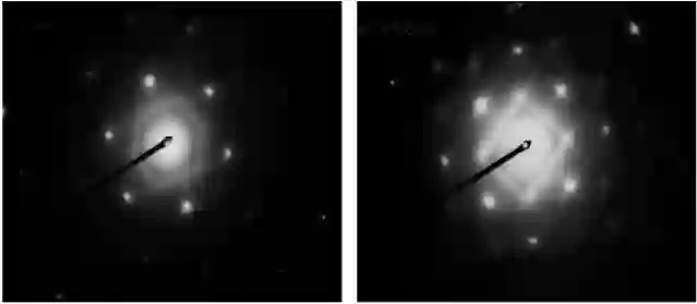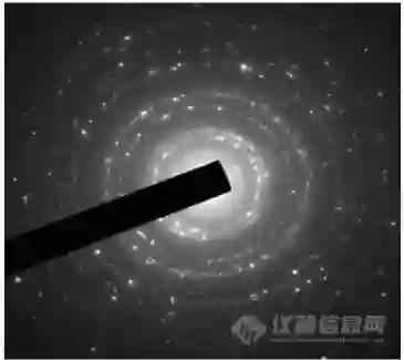 3. 衍射斑点散乱但是隐约能看到环状的轮廓 多晶,晶粒很多