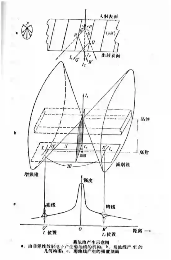 在稍厚的薄膜试样中观察电子衍射时,经常会发现在衍射谱的背景衬度上分布着黑白成对的线条。这时,如果旋转试样,衍射斑的亮度虽然会有所变化,但它们的位置基本上不会改变。但是,上述成对的线条却会随样品的转动迅速移动。这样的衍射线条称为菊池线,带有菊池线的衍射花样称之为菊池衍射谱。