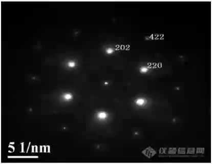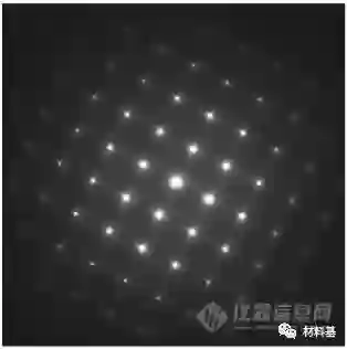 这个就是孪晶的电子衍射,有明显的衍射点分裂现象。