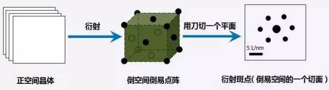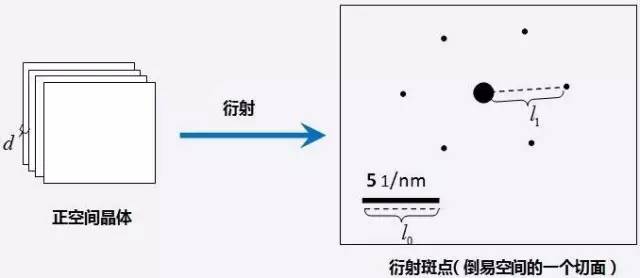 同理,晶体是立体的,映射出来的倒易点阵我们也只能看到一个平面。影子反映的是人的轮廓,通过测量影子的长度和影子和人的比例尺,就可以得到人的实际高度。同样倒易点阵反映的是晶体的晶面间距,通过测量倒易点的距离,再借助标尺就能得到真实晶体的晶面间距。