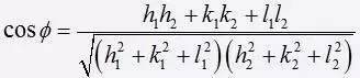 这个数据库有1331条。然后,注意是然后,再计算每两个晶面之间的夹角。立方晶系夹角的计算公式为: