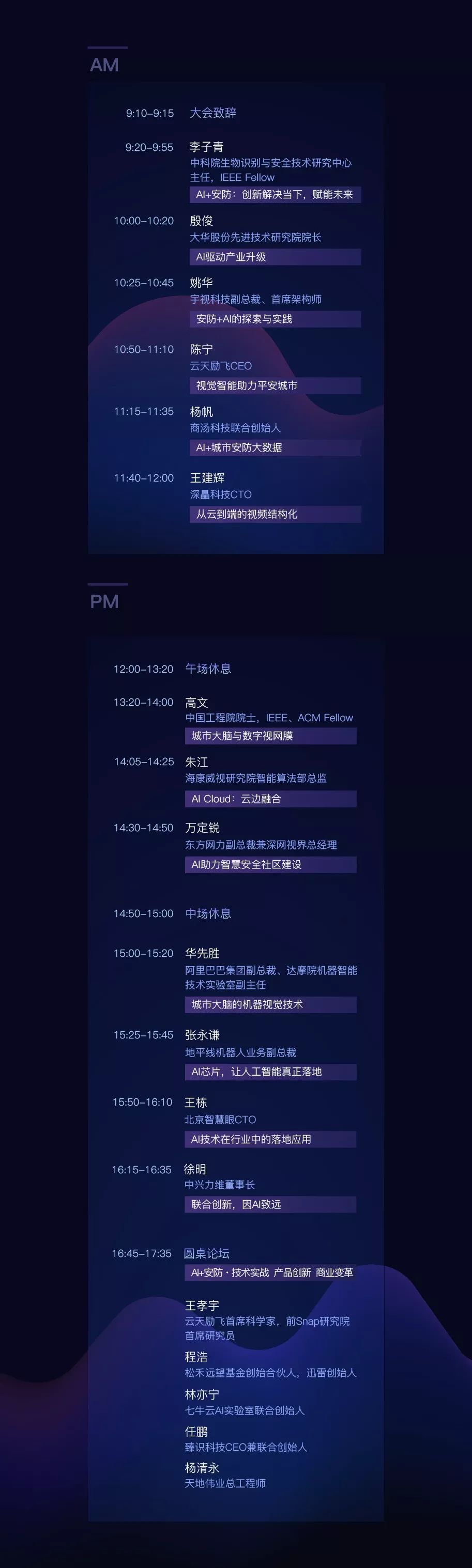 为了让参会者学到其他安防大会中难以了解到的专业知识与经验,17位演讲与圆桌嘉宾均为技术出身,平均每人有着17年以上的算法研究与工程开发经验,其中9位为名校人工智能博士学历。