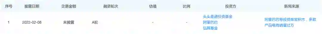 木”进军积木类目,今年2月8日,森宝积木拿到了头头是道投资基金、