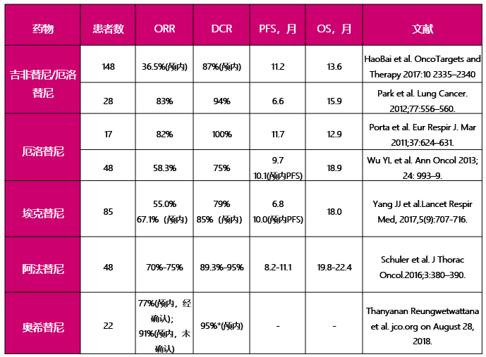 EGFR-TKI药物治疗EGFR突变阳性肺癌脑转移研究数据