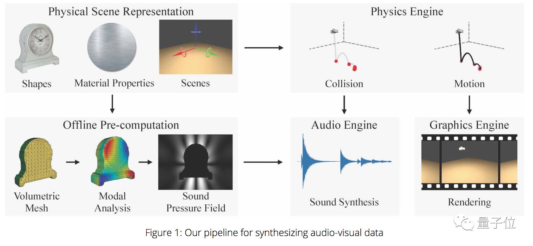 其中三篇论文谈及如何从视觉和听觉数据中,推断出物体的物理结构。另外一篇,则是预测这些物体会会如何发生变化。