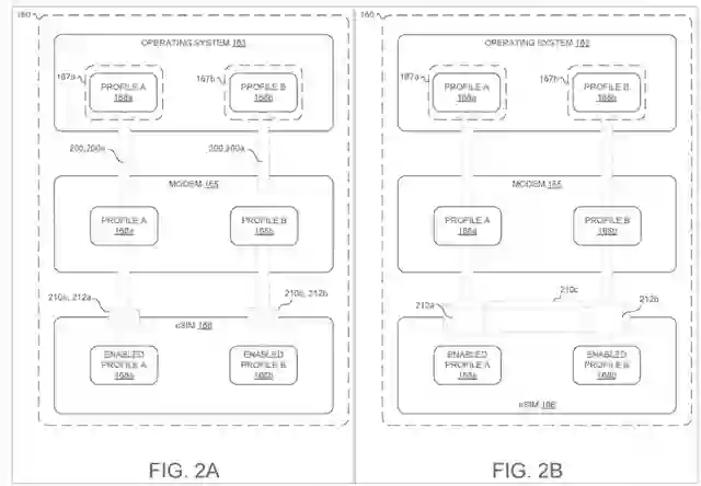 从专利描述来看,其通过将调制解调器和 eSIM 芯片之间的单个物理数据总线拆分为多个逻辑接口来实现,这些逻辑接口在单个物理接口上复用。听起来有点像现代 CPU 将物理 CPU 内核拆分为逻辑 CPU 内核,从而同时执行更多任务。