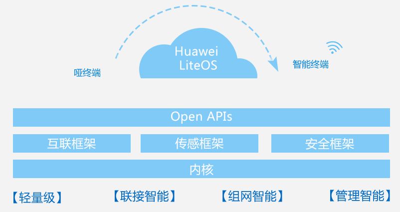 Lite OS 目前世界上最轻量级的物联网操作系统,其系统体积轻巧到10KB级,具备零配置、自组网、跨平台的能力,可广泛应用于智能家居、穿戴式、工业等领域。由于LiteOS 实行开源,合作伙伴便可以快速构建自己的物联网产品,这将让智能硬件的开发变得更加简单,从而加快实现万物的互联互通。Lite OS 的模式与牛津大学研究人员发明的Contiki 系统、加州大学伯克利分校发明的TinyOS 相似,同样具备轻量化、开源的特性。