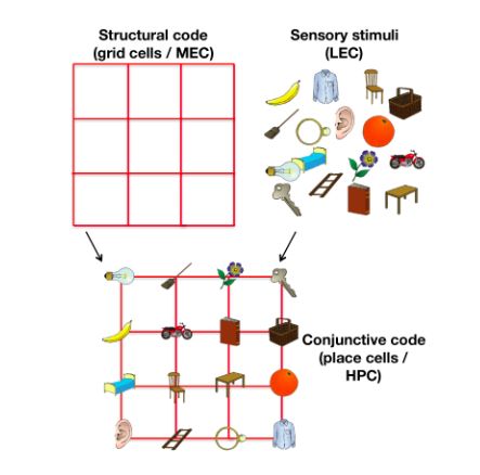 我们提出网格单元表示是抽象空间中的一个位置,而位置单元表示对于快速情节记忆的形成是有用的。我们建议将刺激与该位置联系起来,记忆应该是抽象位置和感觉刺激的结合,因此我们提出位置单元形成感觉器和网格输入之间的连接表示(图1)。这与实验证据