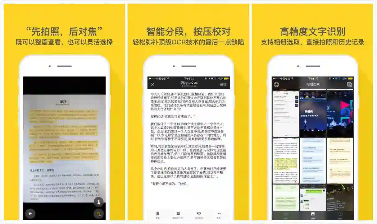 使用它轻松将纸质文档,读书笔记扫描提取。而且它自带云引擎识别,还能自动对焦,自动校对功能。扫描之后会自动保存历史记录。