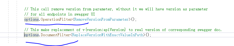 显示就这样,不能根据swagger选择,直观的显示是v1还是v2。这个就是RemoveVersionFromParameter和ReplaceVersionWithExactValueInPath两个类的作用。