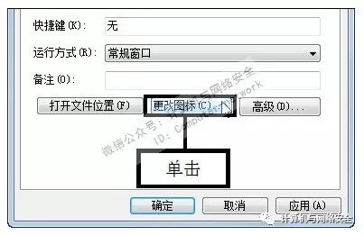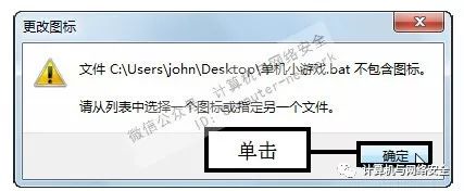 步骤12:单击“确定”按钮,弹出“更改图标”对话框,提示用户从列表中选择一个图标或指定另一个文件,单击“确定”按钮。