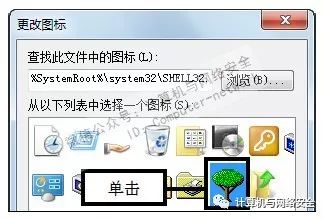 步骤13:选择图标,弹出“更改图标”对话框,在“从以下列表中选择一个图标”列表框中选择合适的图标。