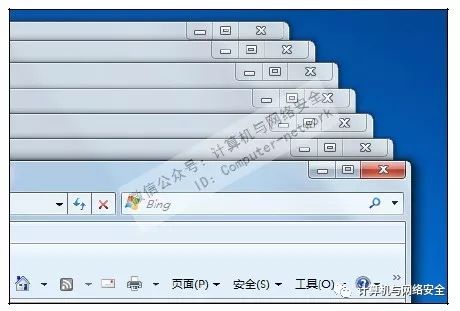 当某些病毒被激活之后,IE会弹出无限多的窗口。当计算机中了这类病毒以后,一旦运行Internet Explorer程序,将会弹出无限多的IE浏览器窗口,如下图所示。