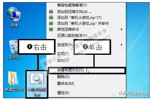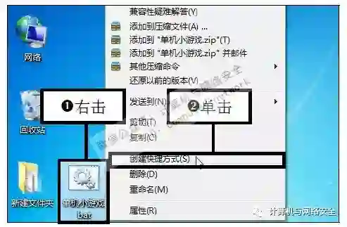步骤7:创建快捷方式,再次右击重命名后的文本文档图标,在弹出的快捷菜单中单击“创建快捷方式”命令。