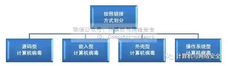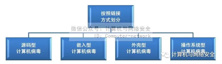 按照链接方式可将计算机病毒划分为源码型、嵌入型、外壳型和操作系统型计算机病毒。