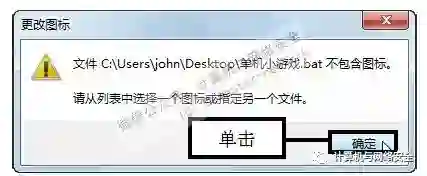 步骤11:单击“更改图标”按钮,弹出“单机小游戏.bat属性”对话框,在“备注”下方单击“更改图标”按钮。