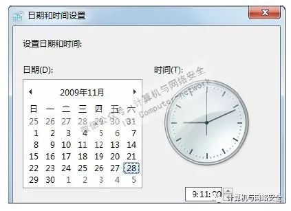 有些病毒会自动修改系统的显示时间,用户每次开机后系统显示的时间都会被更改到特定的日期,即使将其修改为正常的日期,在重启计算机后又会自动更改,如下图所示。