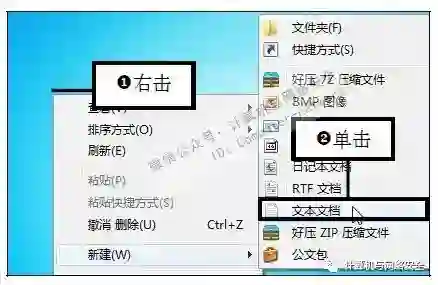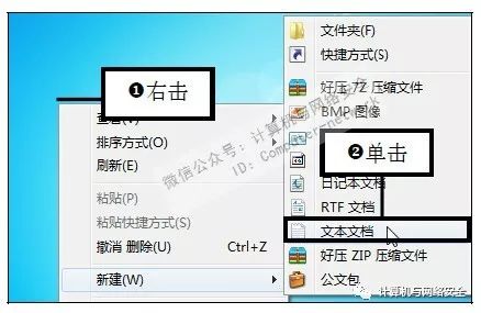 步骤1:新建文本文档,右击桌面上的空白处,在弹出的快捷菜单中依次单击“新建>文本文档”命令。