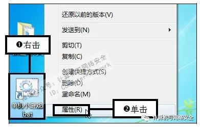 步骤10:单击“属性”命令,返回桌面,由于快捷方式图标比较特殊,因此需要更改为常用图标,右击快捷方式图标,在弹出的快捷菜单中单击“属性”命令。