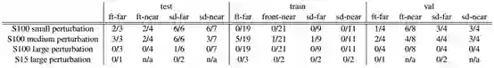 表3:RCNN和YOLO在物理对抗停止标志(physical adversarial stop signs)和物理干净停止标志(physicalclean stop signs)的不同情况下的检出率。表中的布局类似于表1。对于较大的干扰,我们有两个不同亮度的停止标志,还有一个停止标志在亮度上具有非常大的扰动。我们展示了30 x 30英寸对抗停止标志(adv)和20 x 20英寸的正常停止标志的检测率。