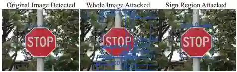 图1:Evtimov等人生成被错误分类的物理停止标志,然而,这些停止标志可以被Faster RCNN检测到。图片来自[17]的图10.(引用参见原文)