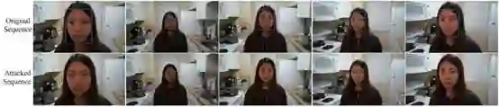 图5:针对基于人脸检测器的Faster RCNN [ 12 ]的对抗样本,可以在跨视角条件下进行泛化。第一行中的原始图像从测试视频序列中被采样,并且所有的人脸被可靠地检测到。我们将我们的攻击方法应用到视频训练集中,生成一个跨视角条件下的对抗性干扰,并将该干扰应用于该测试序列,生成第二行的攻击序列。这是一次数字攻击。