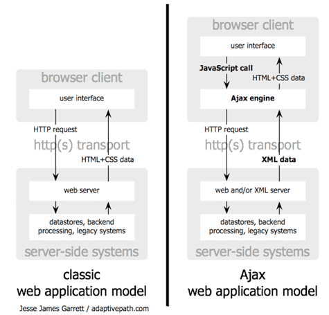 先来回顾一下前端技术领域的重要历史节点,第一个节点是2005年,google的Jesse James Garrett 发表了一篇文章——《Ajax:Web应用程序的新方法》,首次发布了Ajax 这个新的词汇(准确说并不是新的技术,只是新的词汇),当时我还在读大二,虽然ajax不是什么新的技术,只是对XmlHttpRequest等技术的包装,但是这个技术被google宣传之后成为全球web开发的标杆,间接促进了富客户端应用(RIA)和单页应用(SPA)的流行,这些应用大都具备丝滑般的体验(局部刷新),并一直伴随着web 2.0的发展,ajax的深入人心,使得前端js的工作更加复杂和重要,专业分工越来越细,间接促进了专职的前端开发人员这一角色诞生,在此之前,web开发并不区分服务端和浏览器端的工作,因此ajax是前端领域的第一次重要事件。