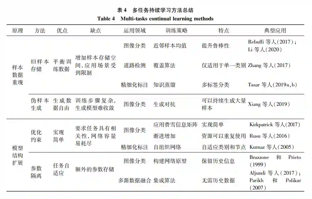 在持续学习模型训练阶段,样本集只包含当前任务样本,而先前任务的样本不可见;在持续学习模型推理阶段,要求模型对先前任务和当前任务均保持良好的预测精度。存在的方法主要分为两类:基于样本数据重现的方法以及基于模型结构扩展的方法。