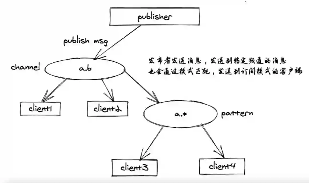 当发布者发布消息时,首先会发送到对应的频道上,在遍历模式列表,根据key匹配模式,匹配成功将消息发给对应的订阅者。