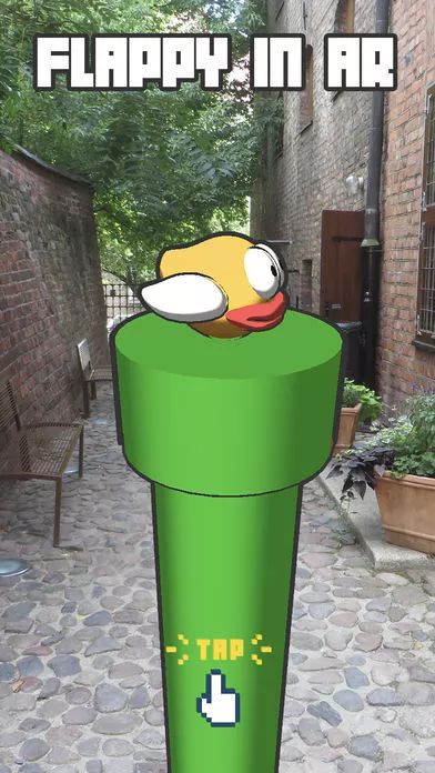 Flappy Bird的AR版本AR Flappy不是由Flappy Bird的原始开发者发布,而是由iOS游戏开发工作室Harold Mintah发布的,Harold Mintah基本专注于简单且像素化的游戏设计,它在ios端发布的22款游戏都没有例外。